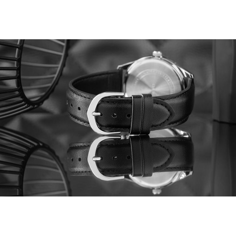 Wykonany z wysokogatunkowej, naturalnej skóry, zachwyca swoją miękkością i precyzją wykonania już przy pierwszym kontakcie. To nie tylko stylowy element, ale także niezawodny towarzysz na co dzień – doskonale układa się na nadgarstku, zapewniając wygodę przez cały dzień. Skóra ta z czasem nabiera jeszcze większego charakteru, pięknie się starzejąc i nadając zegarkowi niepowtarzalny wygląd. Dzięki naturalnym właściwościom skóry, pasek "oddycha", co sprawia, że noszenie zegarka na skórzanym pasku jest wyjątkowo przyjemne i komfortowe.