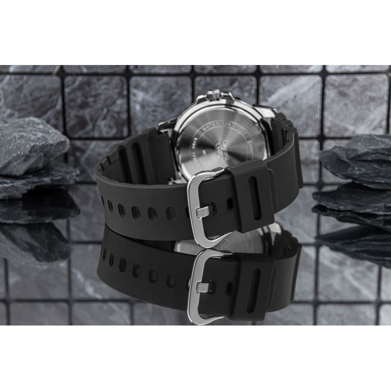 Pasek z tworzywa to doskonałe rozwiązanie dla osób, które cenią sobie wygodę i funkcjonalność w codziennym użytkowaniu zegarka. Mocny a zarazem miękki, elastyczny materiał idealnie dopasowuje się do nadgarstka, zapewniając komfort noszenia przez cały dzień – niezależnie od sytuacji. Pasek jest lekki, przyjemny w dotyku i odporny na działanie wody, potu czy zmiennych warunków pogodowych, dzięki czemu pasek zachowuje swój wygląd i właściwości przez długi czas. To idealny wybór dla osób aktywnych, które potrzebują praktycznego, a jednocześnie stylowego dodatku. Pasek silikonowy łączy w sobie trwałość, nowoczesny wygląd i maksymalną wygodę użytkowania.