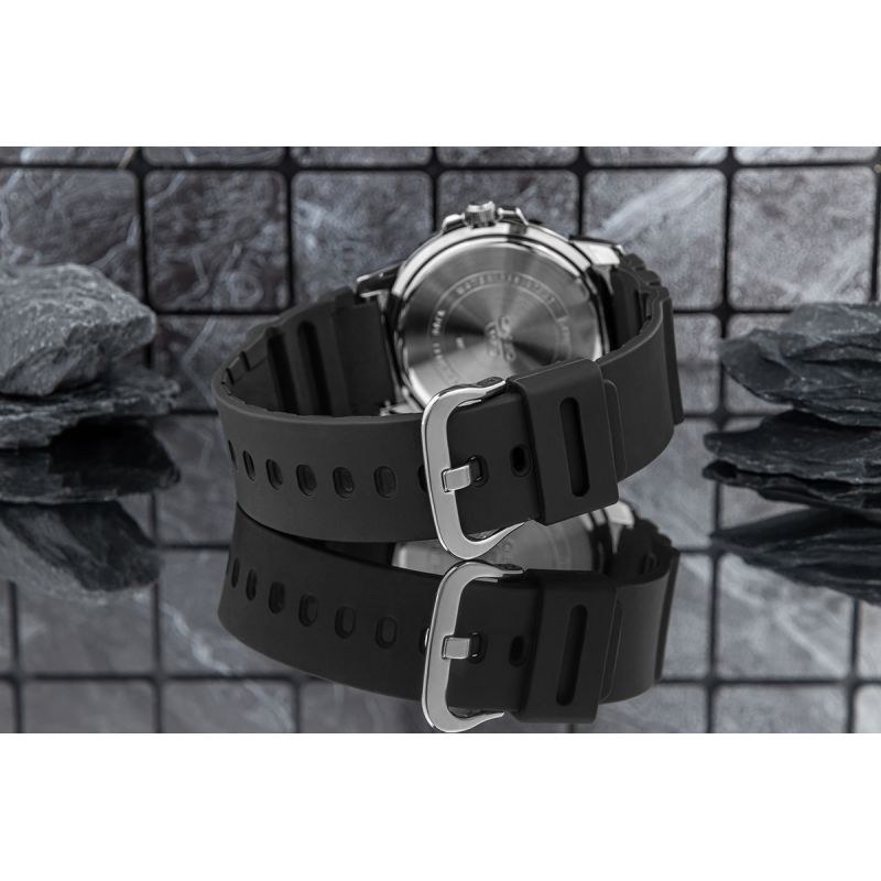 Pasek z tworzywa to doskonałe rozwiązanie dla osób, które cenią sobie wygodę i funkcjonalność w codziennym użytkowaniu zegarka. Mocny a zarazem miękki, elastyczny materiał idealnie dopasowuje się do nadgarstka, zapewniając komfort noszenia przez cały dzień – niezależnie od sytuacji. Pasek jest lekki, przyjemny w dotyku i odporny na działanie wody, potu czy zmiennych warunków pogodowych, dzięki czemu pasek zachowuje swój wygląd i właściwości przez długi czas. To idealny wybór dla osób aktywnych, które potrzebują praktycznego, a jednocześnie stylowego dodatku. Pasek silikonowy łączy w sobie trwałość, nowoczesny wygląd i maksymalną wygodę użytkowania.