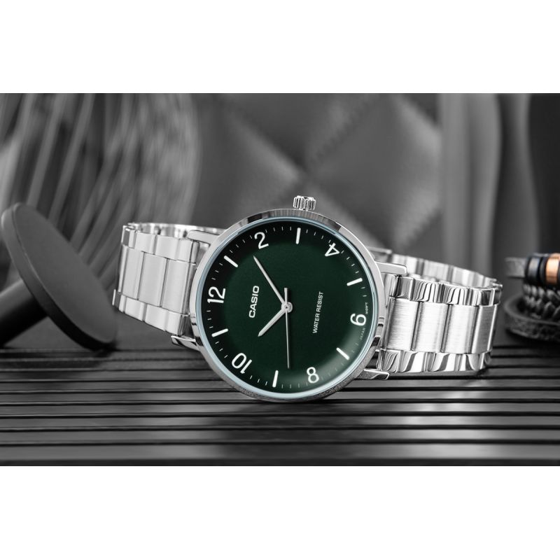 CASIO MTP-VT03 to kolekcja dla tych, którzy wiedzą, że prawdziwy styl nie potrzebuje fajerwerków. Liczy się przejrzystość, spokój i forma, która daje przestrzeń – zarówno na tarczy, jak i w codziennym życiu. Minimalistyczny design robi tu całą robotę. Wyraźne cyfry, smukłe indeksy, cienkie wskazówki – wszystko na swoim miejscu. Nie musisz się zastanawiać, co widzisz – po prostu rzucasz okiem i wiesz. To zegarek, który pracuje cicho, ale robi wrażenie. Wodoszczelność na poziomie podstawowym pozwala na użytkowanie bez obaw o przypadkowe zachlapanie, a cienka koperta 8,5 mm gwarantuje komfort noszenia nawet przez cały dzień. Casio MTP-VT03 to model, króry jest lekki (90g), wygodny i gotowy na każdą okazję. I co najważniejsze – pasuje do wszystkiego, bo nie próbuje z niczym rywalizować.