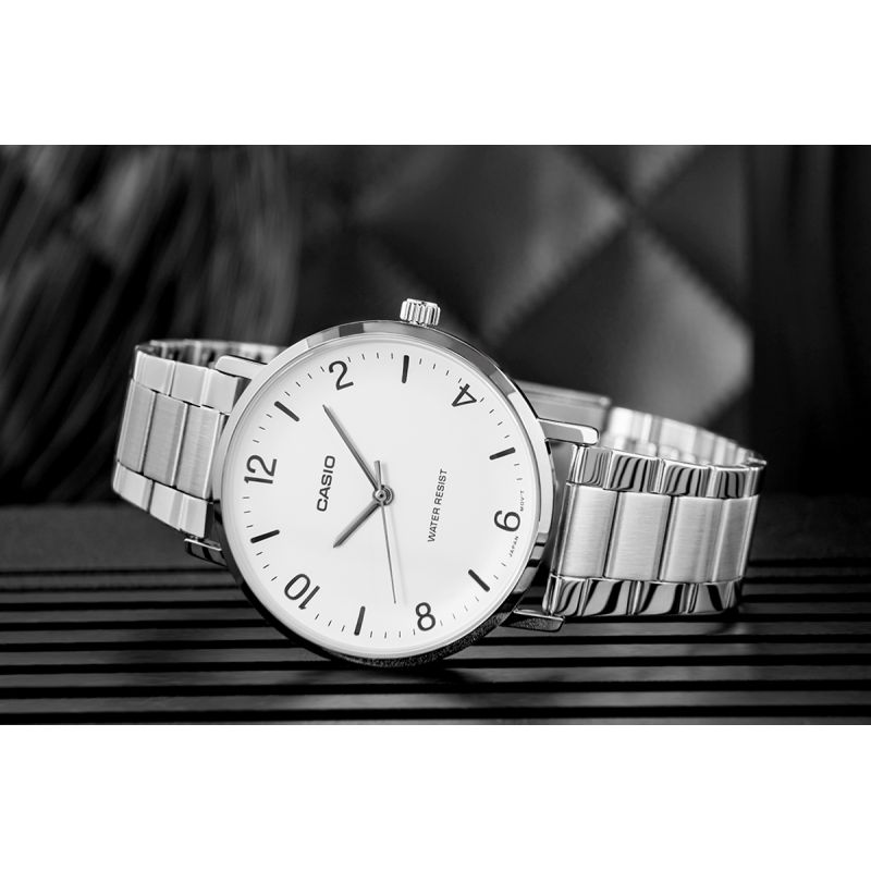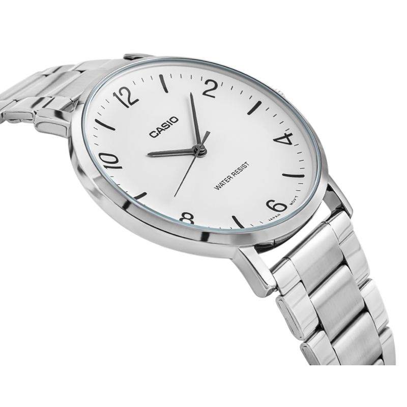 Doceniaj głębię i charakter zegarka o prostym designie, którego wklęsła tarcza subtelnie dopasowuje się do nadgarstka. Przejrzysta, biała tarcza pozbawiona zbędnych zdobień, z prostymi czarnymi indeksami i subtelnymi wskazówkami, tworzy idealnie zrównoważoną kompozycję.Opływowy, minimalistyczny wygląd doskonale komponuje się z codziennym stylem. Wodoodporność na potrzeby codziennego użytkowania pozwala czuć się swobodnie – niezależnie od deszczu czy mycia rąk.