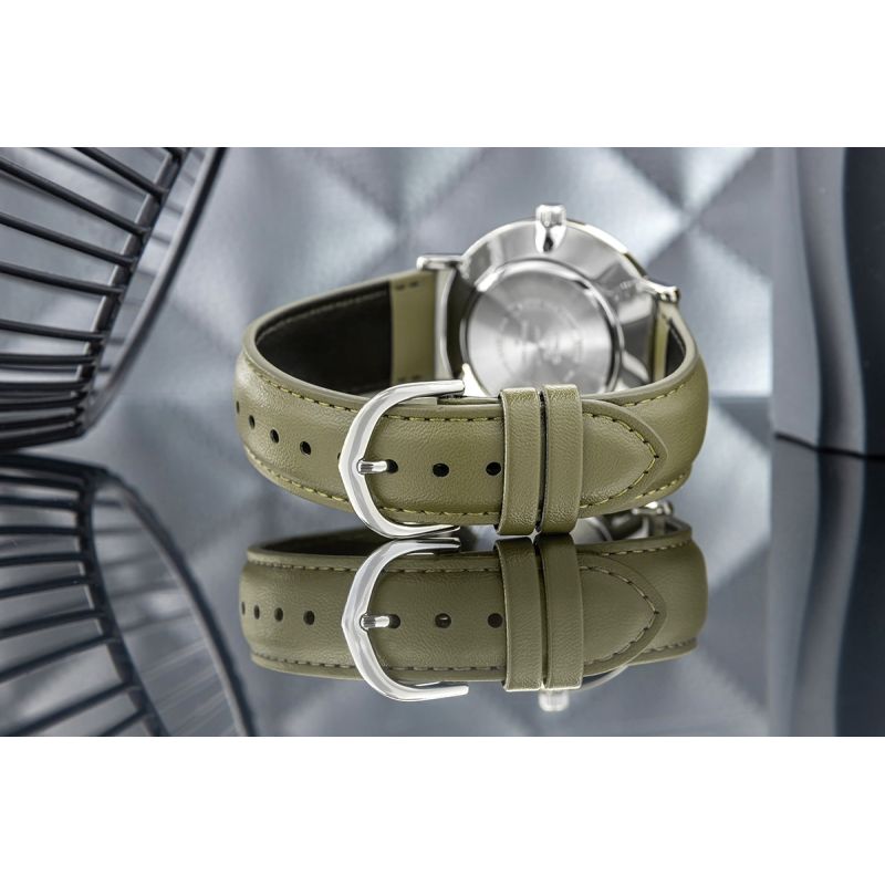 Wykonany z wysokogatunkowej, naturalnej skóry, zachwyca swoją miękkością i precyzją wykonania już przy pierwszym kontakcie. To nie tylko stylowy element, ale także niezawodny towarzysz na co dzień – doskonale układa się na nadgarstku, zapewniając wygodę przez cały dzień. Skóra ta z czasem nabiera jeszcze większego charakteru, pięknie się starzejąc i nadając zegarkowi niepowtarzalny wygląd. Dzięki naturalnym właściwościom skóry, pasek "oddycha", co sprawia, że noszenie zegarka na skórzanym pasku jest wyjątkowo przyjemne i komfortowe.