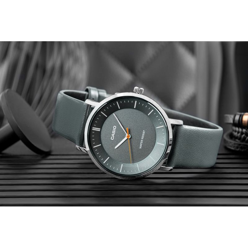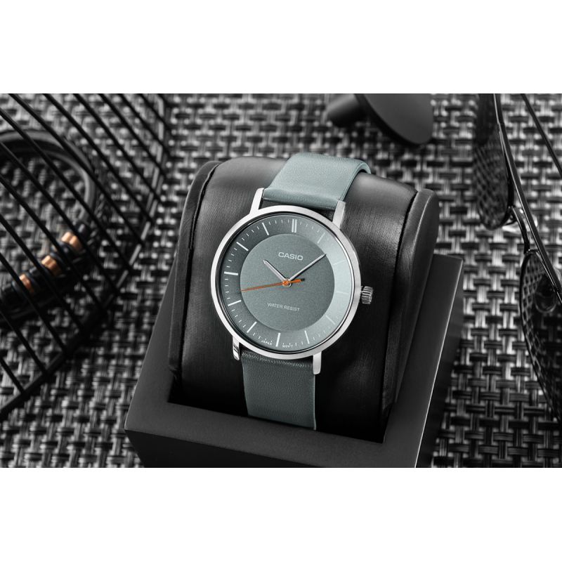 MTP-VT04 to ukłon w stronę czystego designu – bez rozpraszaczy, bez komplikacji, bez hałasu. Tylko Ty i czas – odczytywany z idealnie zbalansowanej tarczy, na której każda kreska ma sens, a każda sekunda płynie w rytmie prostoty. Brak cyfr? To nie brak – to wybór. Brak datownika? Również. Wszystko, co zbędne, zniknęło, by zostawić to, co najważniejsze. Czytelność. Równowagę. Spokój. Powierzchnia tarczy o matowej teksturze dodatkowo nadaje całości nowoczesnego, minimalistycznego charakteru. Ten zegarek dopasowuje się do Ciebie, nie odwrotnie. Idealnie odnajdzie się czy to pod mankietem marynarki, czy w towarzystwie ulubionego T-shirtu. Zegarek jest cieńki (8,5 mm) i lekki (90g), a całość wygodna i gotowa, by być z Tobą codziennie – nie dominując, ale dopełniając.