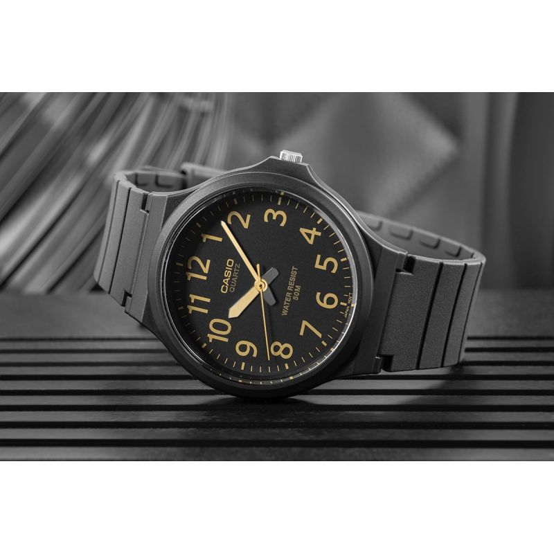 Męski model zegarka CASIO MW-240 łączący minimalizm, funkcjonalność i komfort w męskim wydaniu. Lekka konstrukcja zegarka (zaledwie 35g!) sprawia, że jest niemal niewyczuwalny na nadgarstku. Elastyczny, matowy pasek z żywicy dopasowuje się do ruchów, jest odporny na zużycie i gotowy na każdą sytuację – od spotkań po trening. Duże kontrastowe cyfry oraz wskazówki pozwalają sprawdzić godzinę w mgnieniu oka. Wytrzymałe szkiełko Resin Glass gwarantuje odporność na codzienne użytkowanie, a wodoodporność 5 BAR daje pewność, że zachlapania, deszcz czy szybki prysznic nie będą problemem.