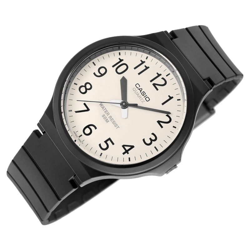 Męski model zegarka CASIO MW-240 łączący minimalizm, funkcjonalność i komfort w męskim wydaniu. Lekka konstrukcja zegarka (zaledwie 35g!) sprawia, że jest niemal niewyczuwalny na nadgarstku. Elastyczny, matowy pasek z żywicy dopasowuje się do ruchów, jest odporny na zużycie i gotowy na każdą sytuację – od spotkań po trening. Duże kontrastowe cyfry oraz wskazówki pozwalają sprawdzić godzinę w mgnieniu oka. Wytrzymałe szkiełko Resin Glass gwarantuje odporność na codzienne użytkowanie, a wodoodporność 5 BAR daje pewność, że zachlapania, deszcz czy szybki prysznic nie będą problemem.