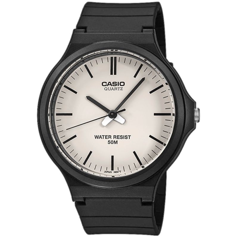 Męski model zegarka CASIO MW-240 łączący minimalizm, funkcjonalność i komfort w męskim wydaniu. Lekka konstrukcja zegarka (zaledwie 35g!) sprawia, że jest niemal niewyczuwalny na nadgarstku. Elastyczny, matowy pasek z żywicy dopasowuje się do ruchów, jest odporny na zużycie i gotowy na każdą sytuację – od spotkań po trening. Duże kontrastowe indeksy pozwalają sprawdzić godzinę w mgnieniu oka. Wytrzymałe szkiełko Resin Glass gwarantuje odporność na codzienne użytkowanie, a wodoodporność 5 BAR daje pewność, że zachlapania, deszcz czy szybki prysznic nie będą problemem.