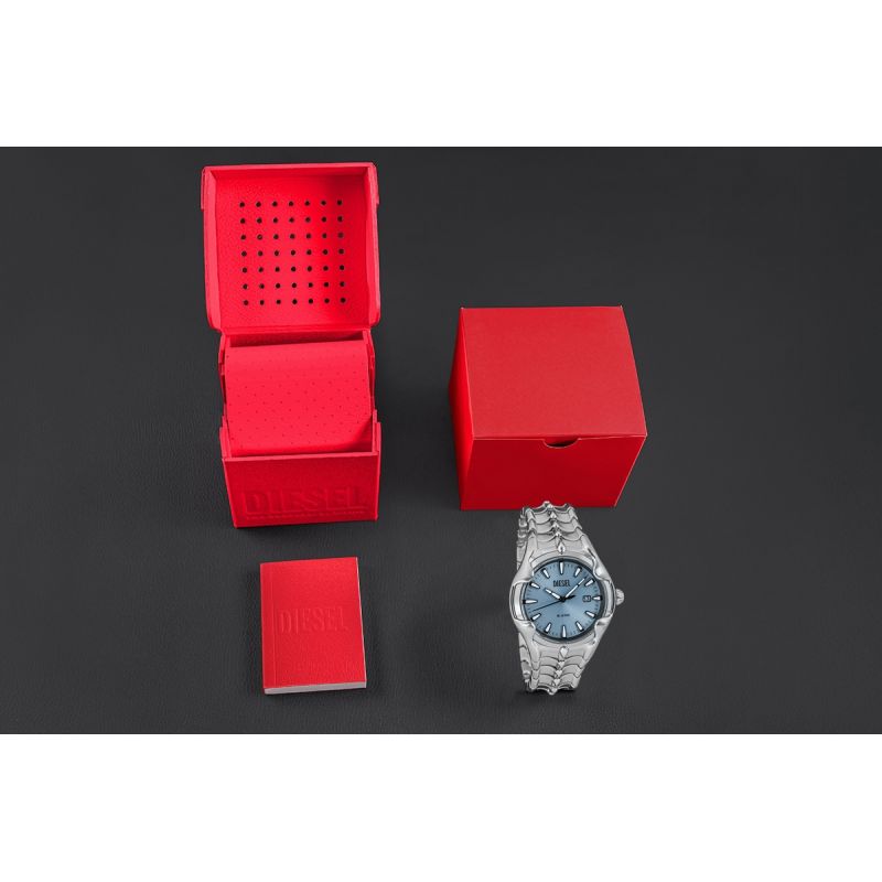 DIESEL to marka, która zawsze robi wrażenie – od zegarka, po każdy element zestawu. Otrzymasz go w oryginalnym, markowym pudełku DIESEL – solidnym i stylowym, które idealnie współgra z wizerunkiem tej marki. To coś więcej niż tylko opakowanie – to zapowiedź tego, co czeka w środku. Idealnie dopasowane do zegarka, podkreśla jego wyjątkowy charakter i sprawia, że staje się gotowym, prestiżowym prezentem.