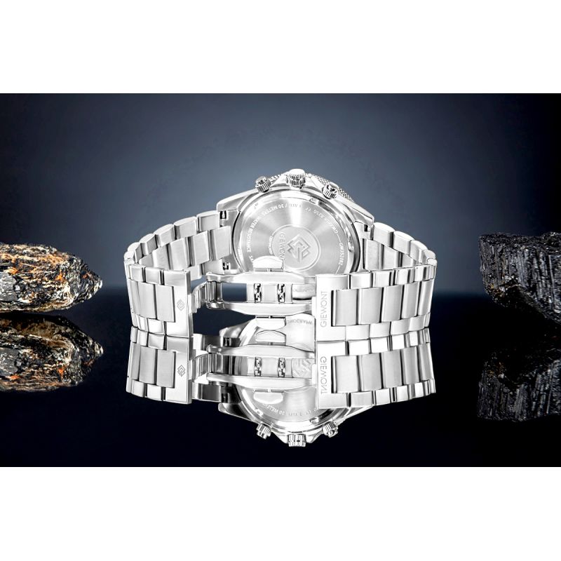 Zapięcie motylkowe sprawia, że bransoleta układa się na nadgarstku z wyjątkową elegancją, a cały mechanizm pozostaje niemal niewidoczny, tworząc efekt perfekcyjnej, spójnej całości. To detal, który jasno sygnalizuje, że masz do czynienia z zegarkiem zaprojektowanym z myślą o najwyższych standardach – dodatkiem, który wyróżnia się klasą, stylem i wyrafinowaniem na wyższym poziomie.