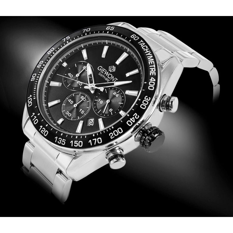Zegarek Męski Giewont Chronograph Sapphire Srebrno Czarny GW9580-B1
