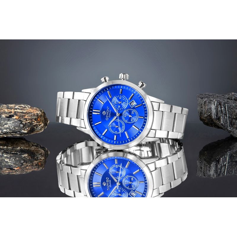 Zegarek Męski Giewont Chronograph Sapphire Srebrno Niebieski GW8510-B3