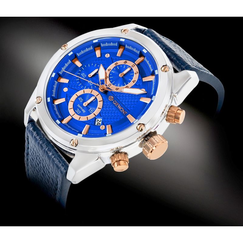 Zegarek Męski Giewont Chronograph Sapphire Srebrno Niebieski GW8810-A2