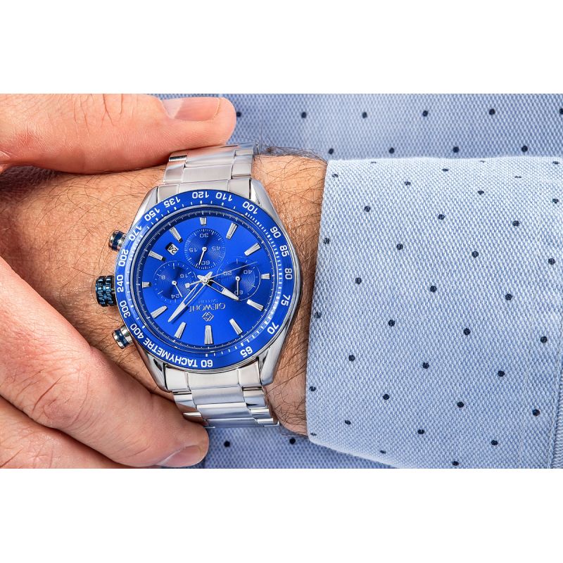Zegarek Męski Giewont Chronograph Sapphire Srebrno Niebieski GW9580-B3