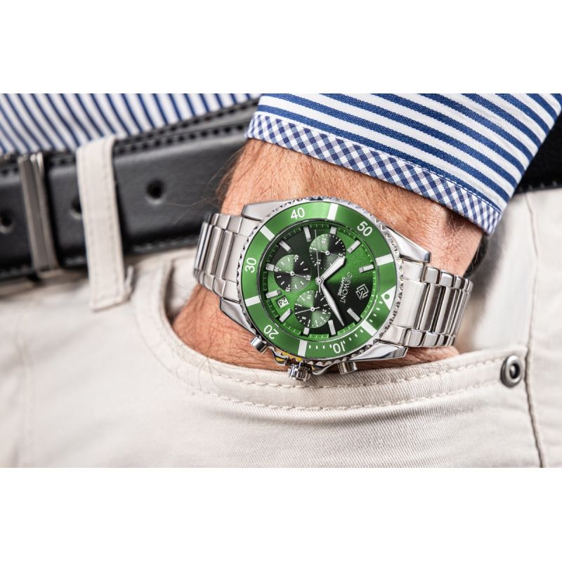 Zegarek Męski Giewont Chronograph Sapphire Srebrno Zielony GW3970-B8