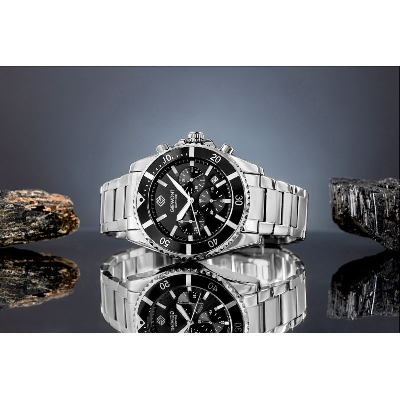 Zegarek męski Giewont GW3970-B2jest to model stworzony dla mężczyzny, który oczekuje wyrazistego charakteru, solidnej konstrukcji i funkcjonalności gotowej sprostać codziennym wyzwaniom. Jego tarcza z subtarczami chronografu wyróżnia się przejrzystym, dynamicznym układem podkreślającym sportowy temperament, a obrotowy bezel inspirowany stylistyką modeli nurkowych dodaje profesjonalnego wyglądu i praktycznego zastosowania. Całość uzupełnia wytrzymała bransoleta zaprojektowana z myślą o komforcie i pewności noszenia, dzięki czemu zegarek doskonale sprawdza się zarówno na co dzień, jak i podczas bardziej wymagających aktywności. Szkiełko szafirowe zapewnia wysoką odporność na zarysowania, pozwalając zachować nienaganną prezencję przez długi czas. Giewont GW3970-B2 to propozycja dla mężczyzny, który ceni dodatki podkreślające pewność siebie i zamiłowanie do dopracowanych funkcjach zegarka, który imponuje formą, wyglądem i dbałością o każdy detal.