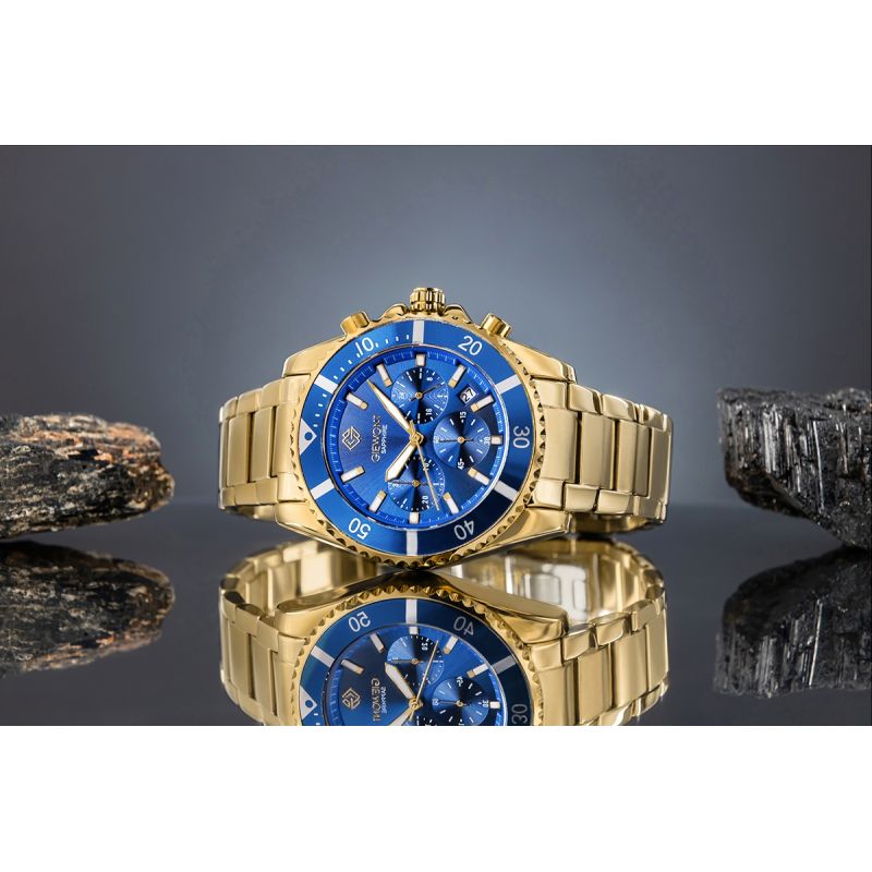 Zegarek Męski Giewont Chronograph Sapphire Złoto Niebieski GW3970-B6