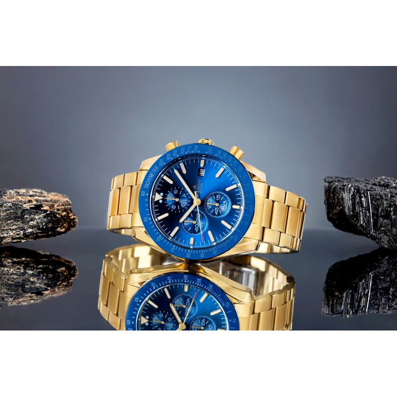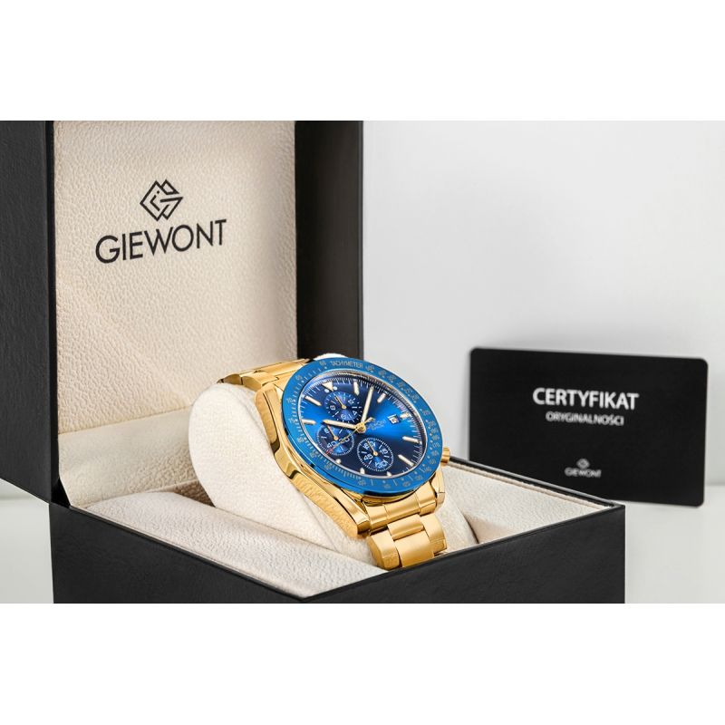 Zegarek Męski Giewont Chronograph Sapphire Złoto Niebieski GW8720-B6