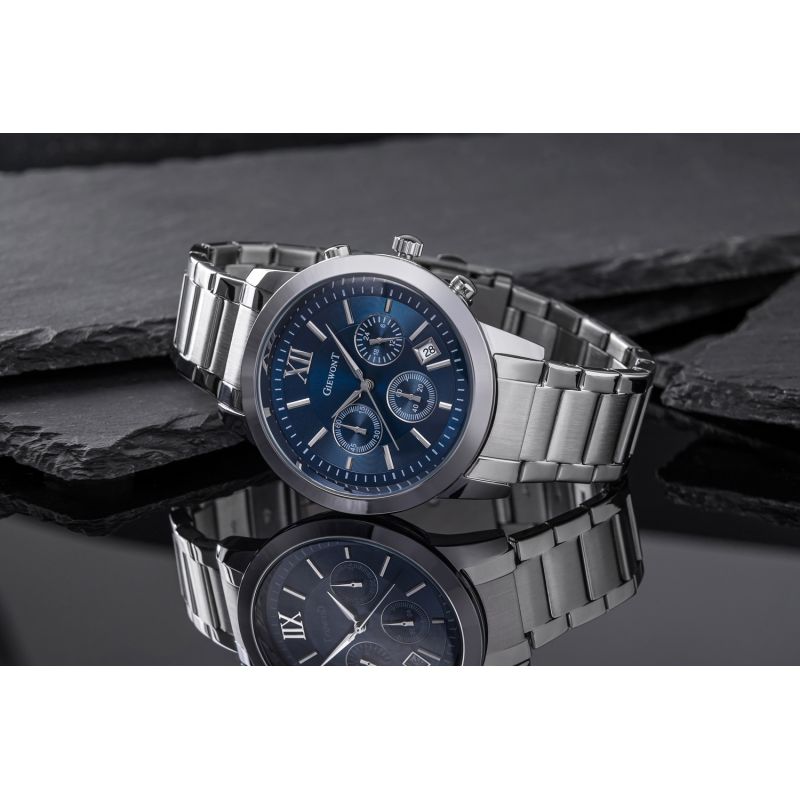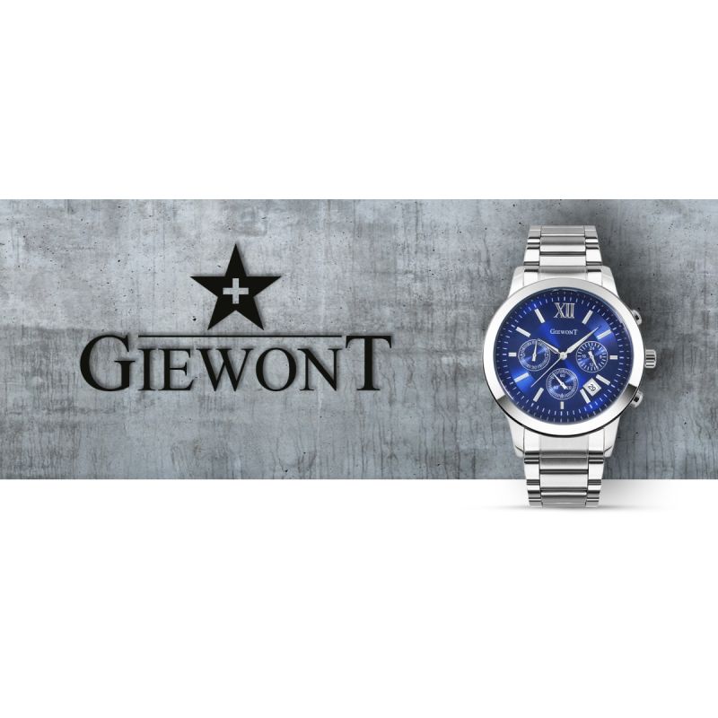 Zegarek męski Giewont GW6480-2 wyposażony jest w chronografy sekund stopera, minut stopera, trybu czasu 24-godzinnego oraz datownik dni miesiąca.