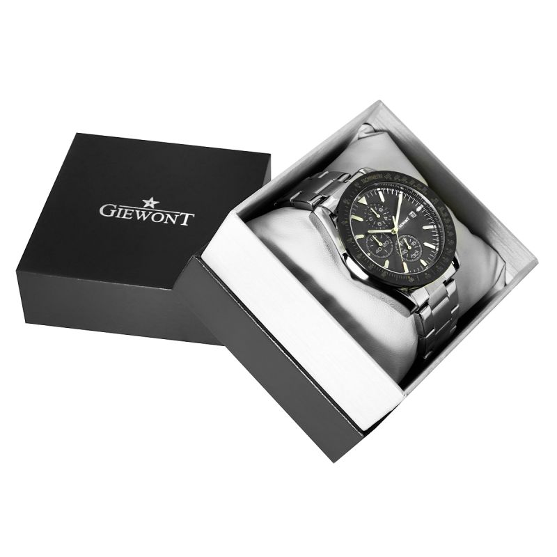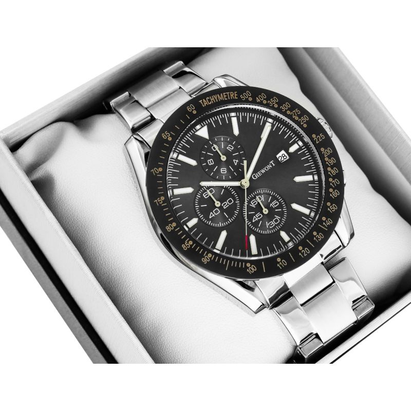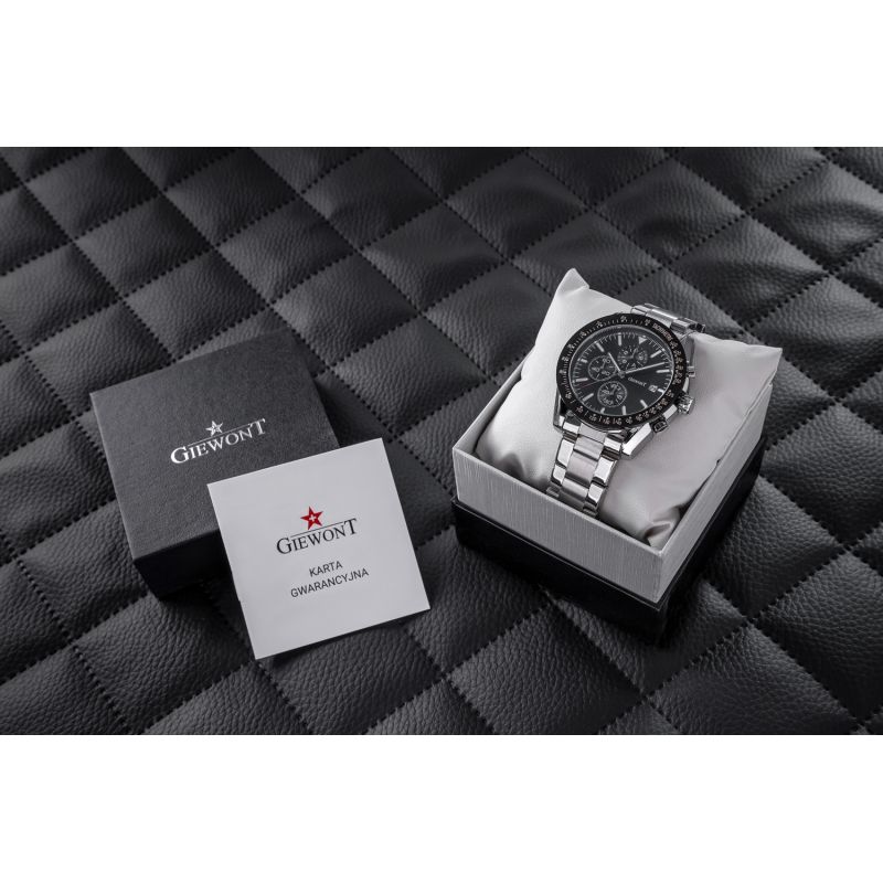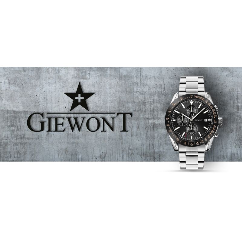 Zegarek męski Giewont GW8620-1 wyposażony jest w chronografy sekund stopera, minut stopera, trybu czasu 24-godzinnego oraz datownik dni miesiąca.