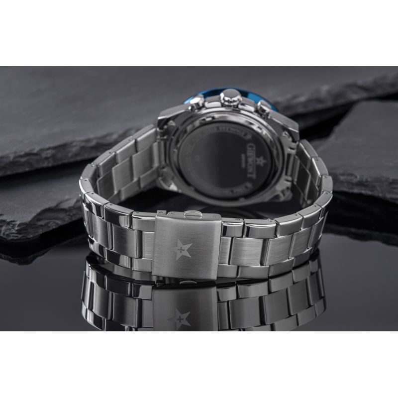 Komfortowa, stalowa bransoleta to znakomite uzupełnienie tego zegarka. Rodzaj bransolety jest gwarancją solidności i wygody podczas codziennego użytkowania. Komfort dopełnia odpowiednia jakość stali, która komfortowo dopasowuje się do męskiego nadgarstka. Zapięcie sygnowane jest logiem marki Giewont, co podnosi prestiż zegarka i zapewnia wyjątkowość na tle innych marek zegarków.