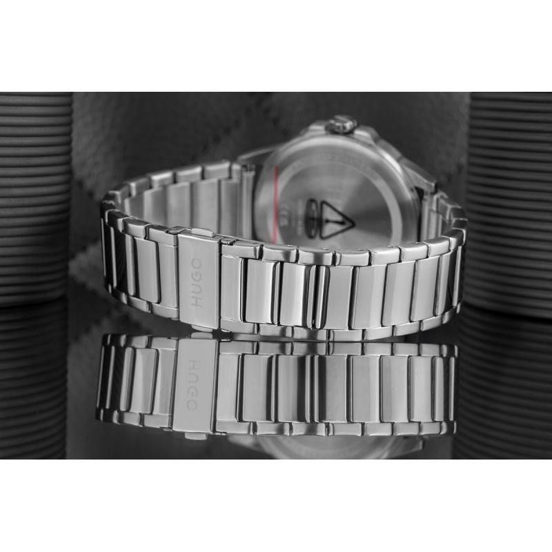Jeśli chcesz, by Twój czasomierz odzwierciedlał Twoją elegancję i wyczucie smaku, Hugo First 1530186 to wybór, który nie zawiedzie. Granatowa tarcza z subtelnym szczotkowanym wykończeniem emanuje spokojem i klasą, a srebrne indeksy i wskazówki dodają całości wyrazistości. Solidna, stalowa bransoleta to symbol męskiej siły i niezawodności, doskonale pasująca do każdego stylu – od formalnego garnituru po casualowy smart look. Minimalistyczny układ tarczy sprawia, że zegarek prezentuje się nowocześnie, ale z nutą tradycji.