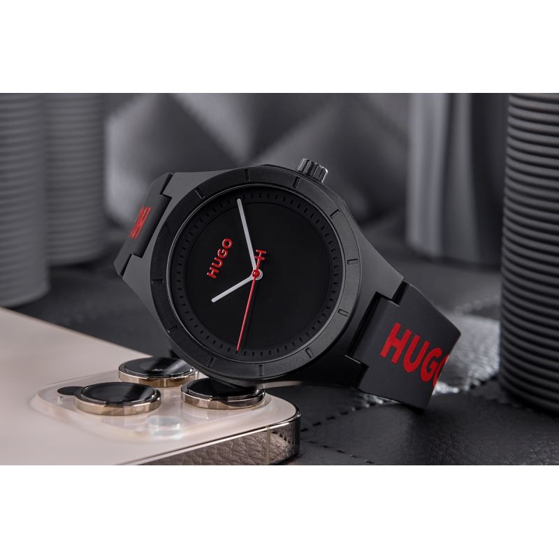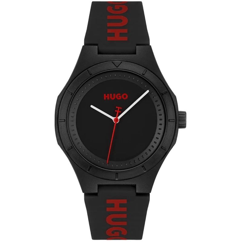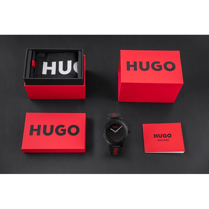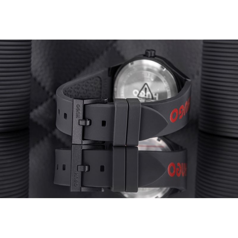 Nosząc Hugo Black pokazujesz, że liczy się nie tylko czas, ale również styl, z jakim go przeżywasz. To nie model, który znika w tle – to zegarek, który głośno podkreśla Twój charakter. Solidny, czarny pasek z dużym logo Hugo w czerwieni nadaje zegarkowi mocnego, miejskiego charakteru, który idealnie łączy sportowy luz z nowoczesnym stylem. Ta odważna kombinacja kolorów – czerni i czerwieni – działa jak magnes na spojrzenia i dodaje Ci pewności w każdej sytuacji.