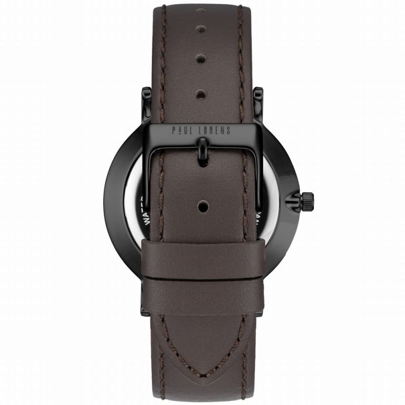 Wykonany z wysokogatunkowej, naturalnej skóry, zachwyca swoją miękkością i precyzją wykonania już przy pierwszym kontakcie. To nie tylko stylowy element, ale także niezawodny towarzysz na co dzień – doskonale układa się na nadgarstku, zapewniając wygodę przez cały dzień. Skóra ta z czasem nabiera jeszcze większego charakteru, pięknie się starzejąc i nadając zegarkowi niepowtarzalny wygląd. Dzięki naturalnym właściwościom skóry, pasek "oddycha", co sprawia, że noszenie zegarka Paul Lorens na skórzanym pasku jest wyjątkowo przyjemne i komfortowe. Całości dopełnia zapięcie ozdobione logo Paul Lorens – znak jakości i prestiżu, który przyciąga spojrzenia i podkreśla wyjątkowy charakter tego dodatku.