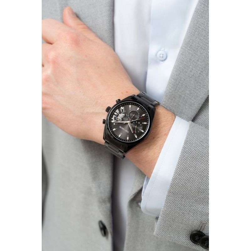 Wykonana z najwyższej jakości stali nierdzewnej to połączenie niezłomnej trwałości i luksusowego wykończenia, które robi wrażenie od pierwszego spojrzenia. Jej mocna, solidna konstrukcja zapewnia niezawodność i pewność, że zegarek będzie leżeć perfekcyjnie, bez względu na to, jak wymagający będzie Twój dzień. Precyzyjnie wykonane zapięcie, opatrzone wytłoczonym logo, dopełnia ten mocny, męski charakter, dodając odrobinę elegancji i prestiżu. Wielostopniowy mechanizm zapięcia zapobiega przypadkowemu odpięciu zegarka.