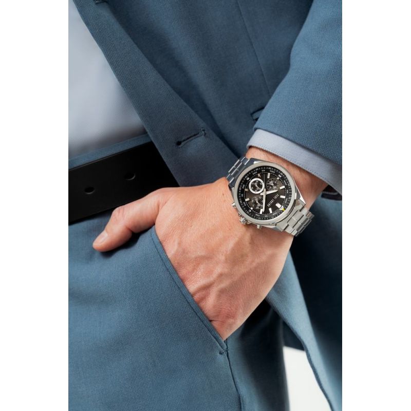 - Tarcza: Analogowa z chronografami i pierścieniem kompasowym