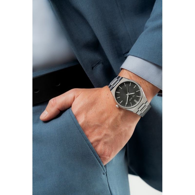 Wykonana z najwyższej jakości stali nierdzewnej to połączenie niezłomnej trwałości i luksusowego wykończenia, które robi wrażenie od pierwszego spojrzenia. Jej mocna, solidna konstrukcja zapewnia niezawodność i pewność, że zegarek będzie leżeć perfekcyjnie, bez względu na to, jak wymagający będzie Twój dzień. Precyzyjnie wykonane zapięcie, opatrzone wytłoczonym logo, dopełnia ten mocny, męski charakter, dodając odrobinę elegancji i prestiżu. Wielostopniowy mechanizm zapięcia zapobiega przypadkowemu odpięciu zegarka.