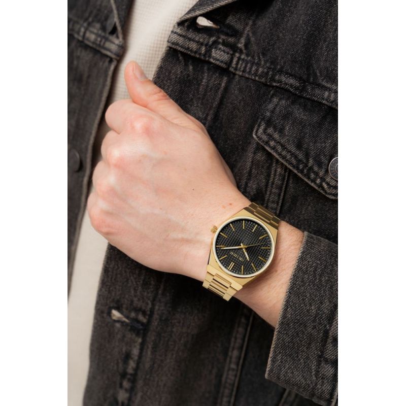 Wykonana z najwyższej jakości stali nierdzewnej to połączenie niezłomnej trwałości i luksusowego wykończenia, które robi wrażenie od pierwszego spojrzenia. Jej mocna, solidna konstrukcja zapewnia niezawodność i pewność, że zegarek będzie leżeć perfekcyjnie, bez względu na to, jak wymagający będzie Twój dzień. Precyzyjnie wykonane zapięcie, opatrzone wytłoczonym logo, dopełnia ten mocny, męski charakter, dodając odrobinę elegancji i prestiżu. Wielostopniowy mechanizm zapięcia zapobiega przypadkowemu odpięciu zegarka.