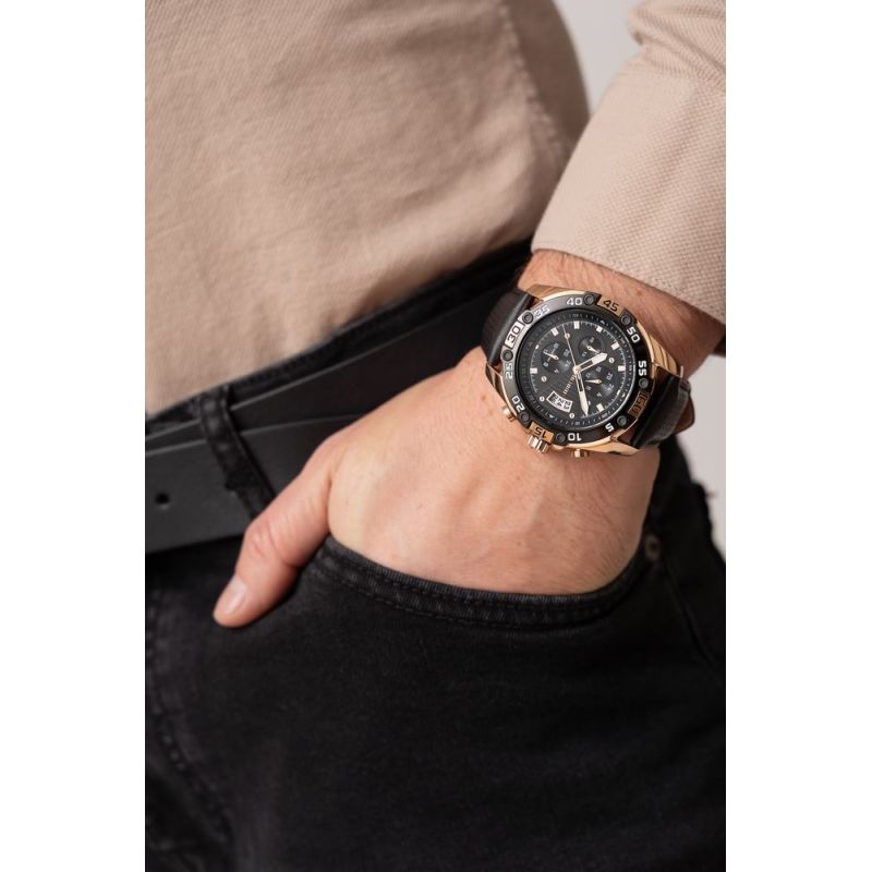 Chronografy w tym zegarku to prawdziwe mistrzostwo, które zadowoli każdego mężczyznę, który ceni sobie precyzyjny pomiar czasu. Intuicyjna obsługa oraz doskonała czytelność sprawiają, że korzystanie z chronografów to prawdziwa przyjemność. Eleganckie wskazania czasu 24h, podwójnego czasu DUAL TIME, oraz dni tygodnia tworzą harmonijną kompozycję, dodając każdej męskiej dłoni niepowtarzalnego szyku. Dodatkowo zegarek wyposażony jest w datownik dni miesiąca. Przemyślane funkcje tego modelu sprawiają, że zegarek staje się nieocenionym towarzyszem w codziennym życiu, idealnie wpisując się w styl mężczyzny, który ceni sobie porządek i precyzję.