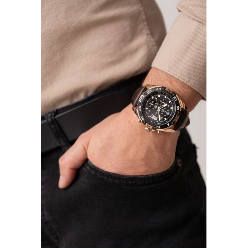 Chronografy w tym zegarku to prawdziwe mistrzostwo, które zadowoli każdego mężczyznę, który ceni sobie precyzyjny pomiar czasu. Intuicyjna obsługa oraz doskonała czytelność sprawiają, że korzystanie z chronografów to prawdziwa przyjemność. Eleganckie wskazania czasu 24h, podwójnego czasu DUAL TIME, oraz dni tygodnia tworzą harmonijną kompozycję, dodając każdej męskiej dłoni niepowtarzalnego szyku. Dodatkowo zegarek wyposażony jest w datownik dni miesiąca. Przemyślane funkcje tego modelu sprawiają, że zegarek staje się nieocenionym towarzyszem w codziennym życiu, idealnie wpisując się w styl mężczyzny, który ceni sobie porządek i precyzję.