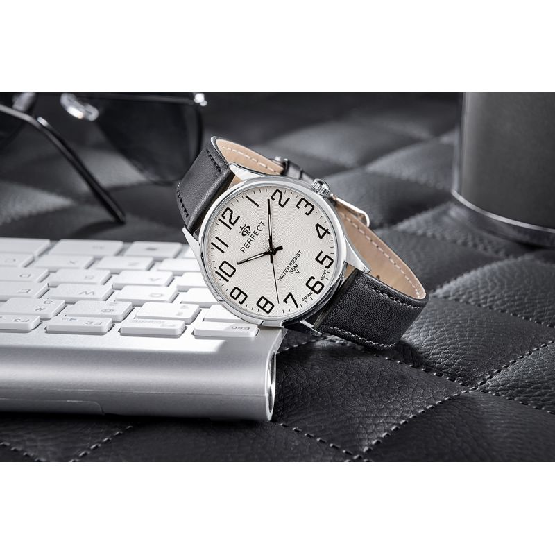 Męski zegarek Perfect wyróżnia się minimalistycznym designem, z klasycznym wskazaniem godzin i minut oraz sekund. To proste, a zarazem eleganckie rozwiązanie, które dodaje męskiej dłoni wyjątkowego szyku, ale także podkreśla jej charakter i klasę.