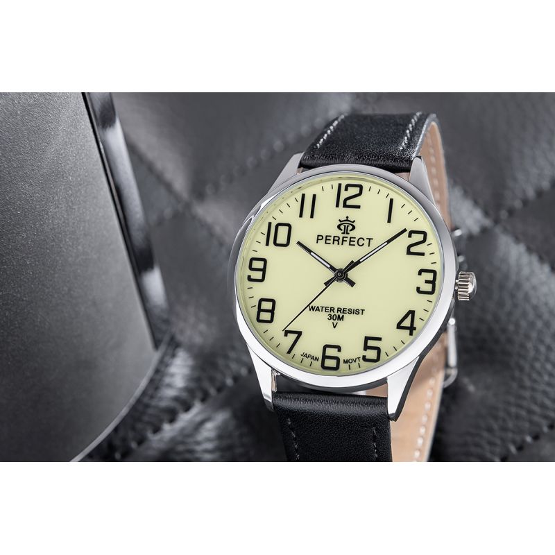 Skórzany pasek tego zegarka to kwintesencja klasy i wygody. Wykonany z najwyższej jakości materiału, komfortowo dopasowuje się do nadgarstka, oferując nie tylko trwałość, ale też elegancki wygląd. Jego miękkość zapewnia komfort noszenia na co dzień, a perfekcyjne wykończenie podkreśla charakterystyczny styl marki Perfect.