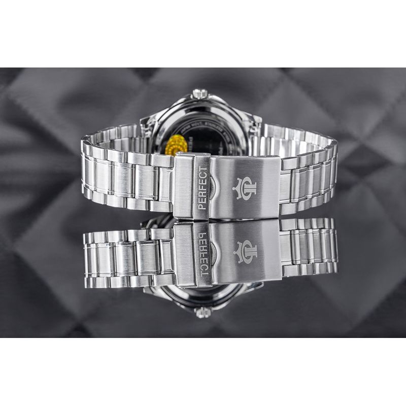 Srebrna bransoleta dopełnia całość, nadając zegarkowi spójną, elegancką estetykę. To doskonały wybór dla mężczyzny, który pragnie wyrażać swoją indywidualność poprzez klasyczne, a zarazem nowoczesne detale. Z tym zegarkiem czas staje się nie tylko funkcjonalny, ale i wyjątkowy, tworząc niepowtarzalny styl na nadgarstku.