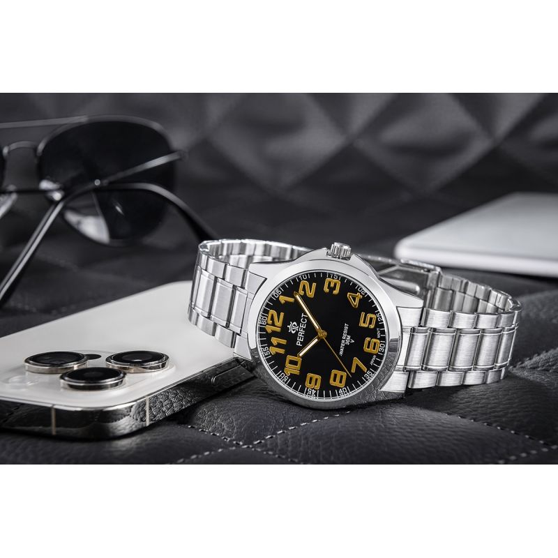 Męski zegarek Perfect wyróżnia się minimalistycznym designem, z klasycznym wskazaniem godzin i minut oraz sekund. To proste, a zarazem eleganckie rozwiązanie, które dodaje męskiej dłoni wyjątkowego szyku, ale także podkreśla jej charakter i klasę.