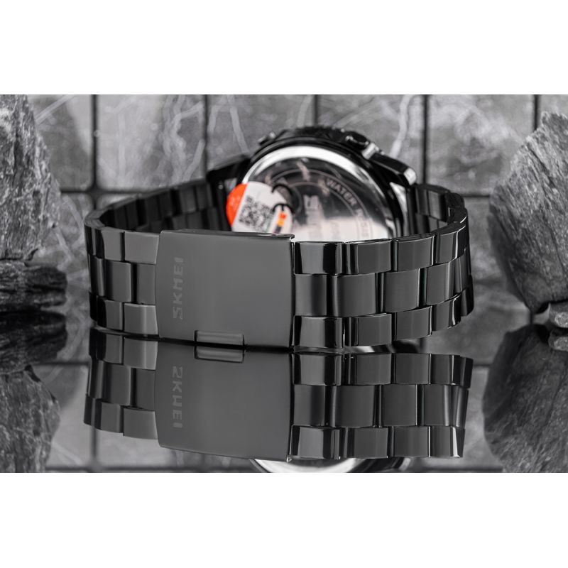 Bransolety zegarków Skmei wykonane z najwyższej jakości stali nierdzewnej, łączą w sobie surową wytrzymałość z elegancją, która przyciąga spojrzenia. Ich solidna konstrukcja to nie tylko symbol niezawodności, ale też pewność, że zegarek będzie trzymać się mocno na nadgarstku, bez względu na wyzwania dnia. Precyzyjne, bezpieczne zapięcie z detalem logo Skmei dodaje całości klasy i wyjątkowego charakteru, tworząc bransoletę, która jednocześnie podkreśla siłę i styl – bez kompromisów.