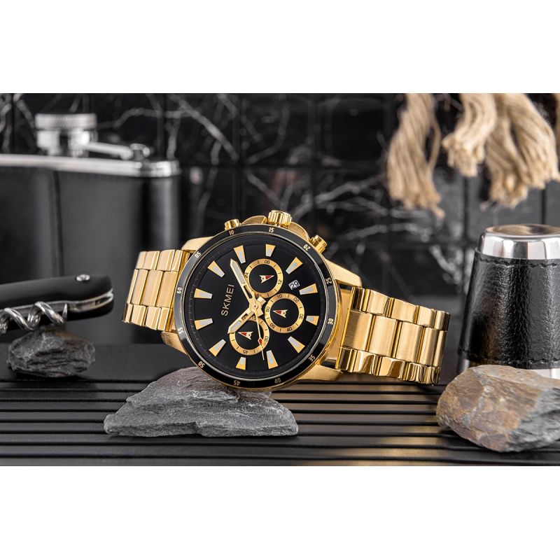 Zegarek Skmei 2295GD to elegancja i moc w jednym – jego złota koperta i bransoleta tworzą luksusowy, wyrazisty wygląd, który nie pozostanie niezauważony. Czarna tarcza z kontrastującymi, złotymi indeksami i wskazówkami daje świetną czytelność, a czerwony akcent na sekundniku dodaje sportowego charakteru. To model dla mężczyzny, który ceni styl, klasę i solidność, niezależnie od okazji.