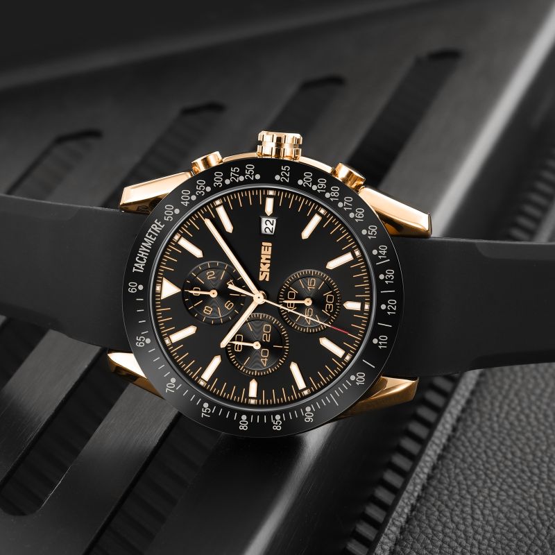 Zegarek Skmei 9253 w wersji na silikonowym pasku nawiązuje do estetyki ekskluzywnych modeli sportowych marek, takich jak TAG Heuer Carrera czy Rolex Daytona. Jego elegancki wygląd, podkreślony wyrazistym bezlem i tarczą z subtarczami emanuje profesjonalnym, sportowym charakterem. Teraz możesz mieć ten luksusowy, wyrazisty styl na swoim nadgarstku, nie rezygnując z wygody i lekkości silikonowego paska.