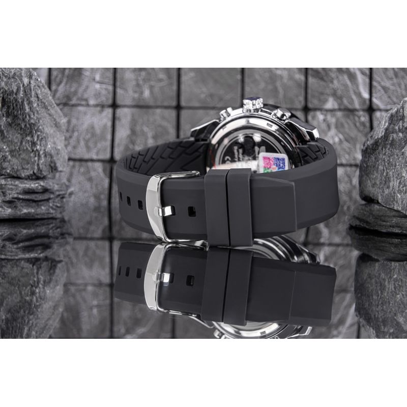 Wykonany z najwyższej jakości, elastycznego silikonu, ten pasek zachwyca swoją miękkością i perfekcyjnym dopasowaniem już od pierwszego założenia. Dzięki swojej wytrzymałości i odporności na wodę, pasek zachowuje estetyczny wygląd na długo, a jego lekkość sprawia, że zegarek idealnie nadaje się do aktywnego stylu życia. Silikonowy pasek jest również niezwykle łatwy w pielęgnacji, co sprawia, że zegarek męski z takim paskiem to połączenie nowoczesnego stylu z praktyczną wygodą.