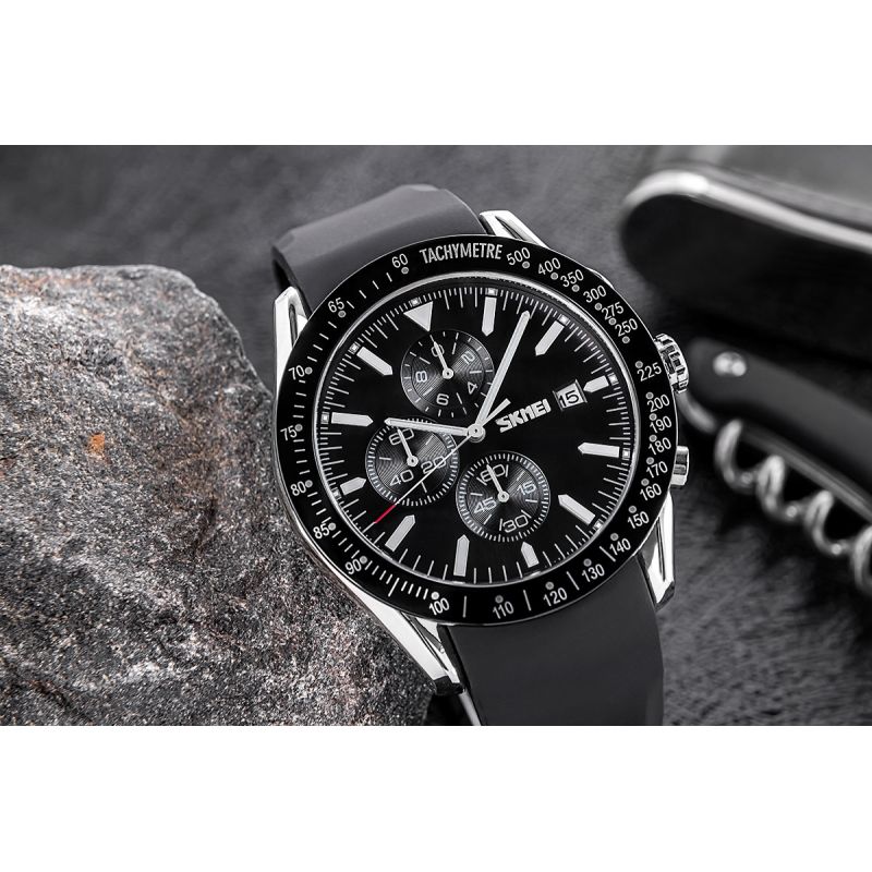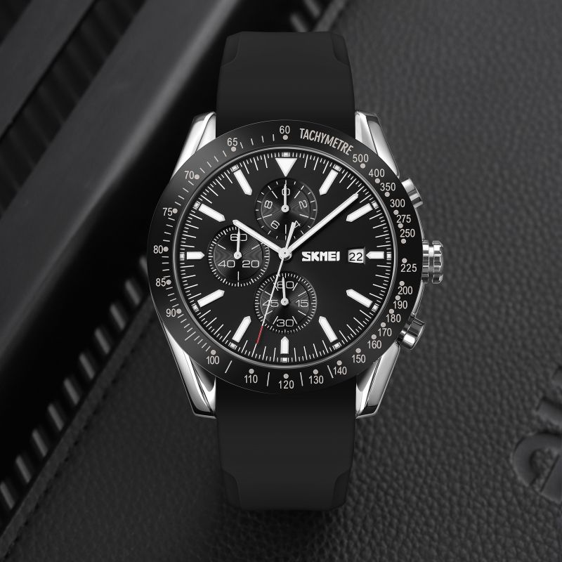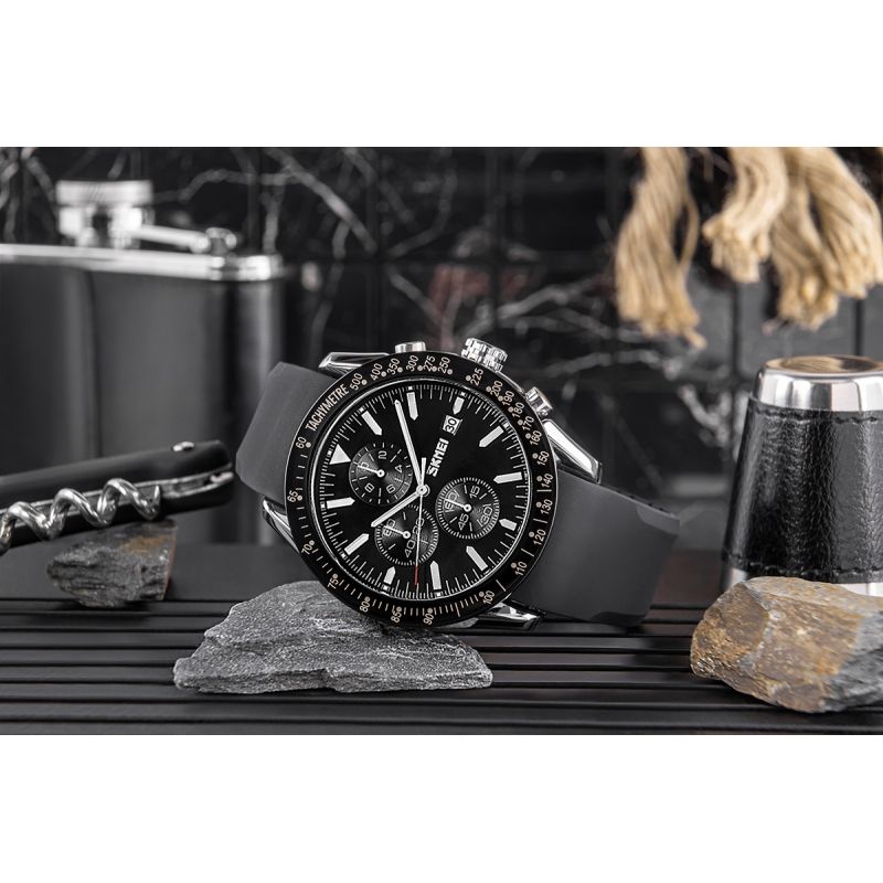 Zegarek Skmei 9253 w wersji na silikonowym pasku nawiązuje do estetyki ekskluzywnych modeli sportowych marek, takich jak TAG Heuer Carrera czy Rolex Daytona. Jego elegancki wygląd, podkreślony wyrazistym bezlem i tarczą z subtarczami emanuje profesjonalnym, sportowym charakterem. Teraz możesz mieć ten luksusowy, wyrazisty styl na swoim nadgarstku, nie rezygnując z wygody i lekkości silikonowego paska.