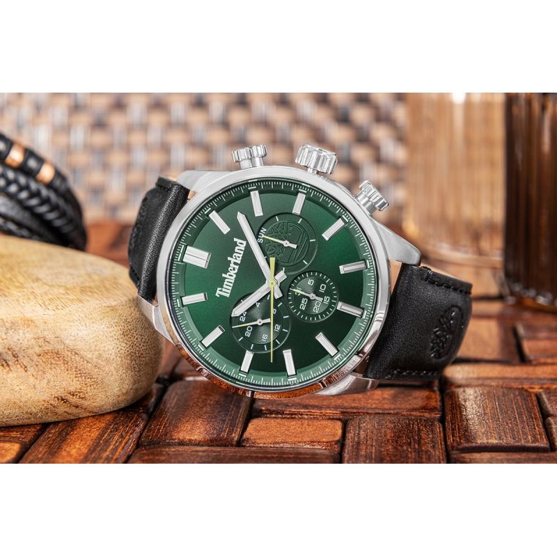 Zegarek Timberland Henniker II to model, który łączy funkcjonalność z wyrazistym, outdoorowym designem inspirowanym naturą. Jego najmocniejszym elementem jest tarcza w głębokim odcieniu zieleni, która przyciąga wzrok i nadaje całości charakteru – surowego, ale jednocześnie nowoczesnego.