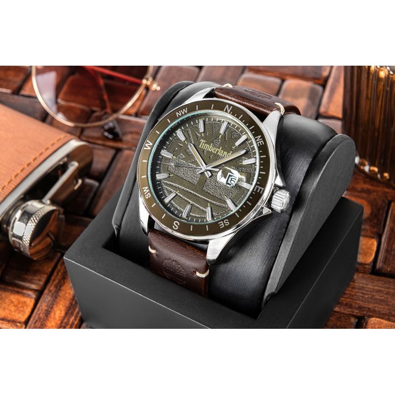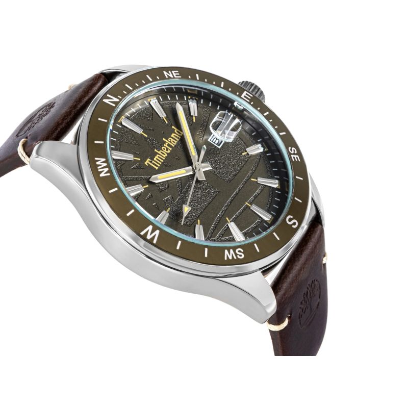 Zegarek Timberland Swampscott w tej wersji to wyraźne nawiązanie do świata outdoor, natury i prawdziwej przygody. Ciemnozielona tarcza inspirowana leśnymi odcieniami doskonale współgra z ciepłym brązem skórzanego paska, tworząc spójną, terenową stylistykę.