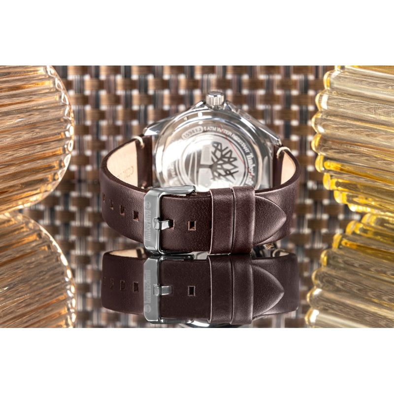 Pasek w zegarku Timberland doskonale oddaje jego outdoorowy charakter i inspirację naturą. Wykonany z solidnej skóry, wyróżnia się subtelnym, grubym przeszyciem w kontrastowym kolorze, które nie tylko przyciąga wzrok, ale także podkreśla jego trwałość i rzemieślniczy styl.