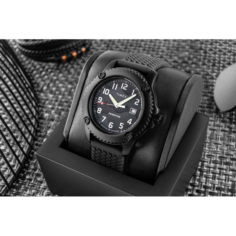 Męski zegarek TIMEX Expedition North TW4B34800 to model stworzony z myślą o aktywnym stylu życia i wymagających warunkach. Już na pierwszy rzut oka wyróżnia się solidną, masywną kopertą w matowej czerni, która podkreśla jego techniczny, outdoorowy charakter i zapewnia wysoką odporność na codzienne wyzwania.