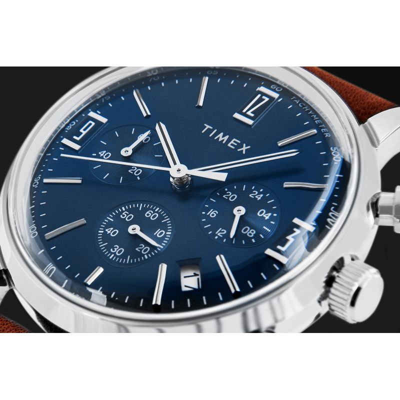 Model TIMEXMarlin® Chronograph Tachymeter otwiera nowy rozdział w historii zegarmistrzostwa marki Timex – to pierwszy Marlin zasilany niezwykle precyzyjnym mechanizmem kwarcowym. Dopracowana konstrukcja łączy klasyczną elegancję z funkcjonalnością,oferując tachymetr umieszczony na zewnętrznym pierścieniu minutowym do pomiaru prędkości,klasyczny chronograf z licznikami minut i sekund stopera orazdatownik.Mimo nowoczesnych rozwiązań, zegarek zachowuje DNA kolekcji Marlin – solidną kopertę ze stali nierdzewnej,wypukłe szkiełko akrylowe i charakterystyczne kwadratowe indeksy przy godzinie 3, 9 i 12. Całość dopełnia perforowany pasek ze skóry naturalnej podkreślający jego retro-nowoczesny charakter. To detale, które łączą funkcjonalność z elegancją i smakiem kolekcji Marlin.