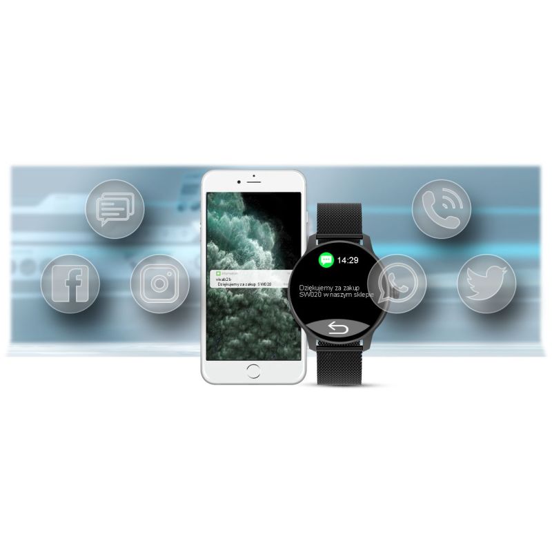 Połączenia przychodzące, sms`y, powiadomienia z aplikacji jakie masz zainstalowane na telefonie komórkowym: Facebook, Twitter, WhatsApp, Instagram to wszystko będzie teraz dostępne od razu na twoim zegarku. Dzięki temu będziesz na bieżąco z wiadomościami, które do ciebie dotrą na telefon komórkowy.