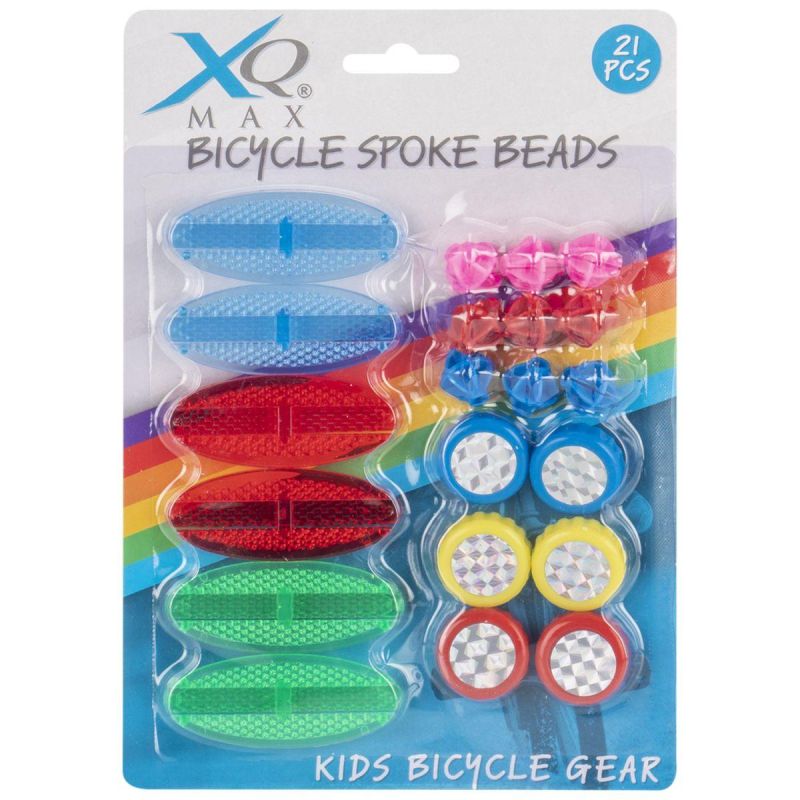 ZESTAW 21 KORALIKÓW DEKORACJI NA SZPRYCHY ROWEROWE XQMAX to nie tylko dekoracja – to również zwiększone bezpieczeństwo! Elementy odblaskowe poprawiają widoczność rowerzysty w ciemności, a kolorowe koraliki sprawiają dzieciom frajdę i zachęcają do jazdy na rowerze.