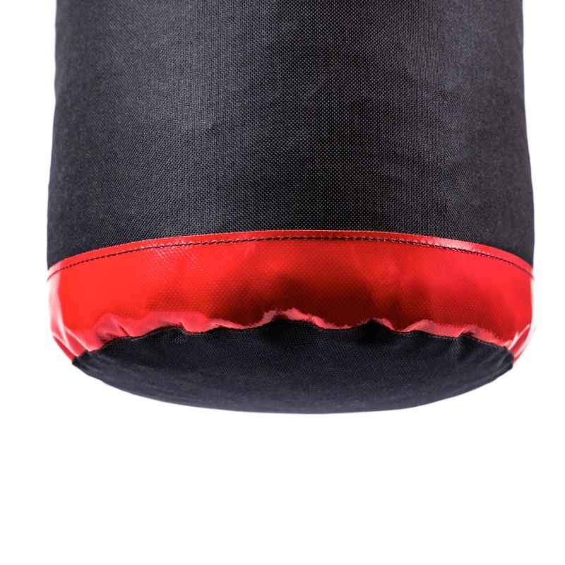 W pełni wypełniony i gotowy do treningu worek bokserski wykonany z grubego i odpornego na rozerwania materiału poliestrowego.