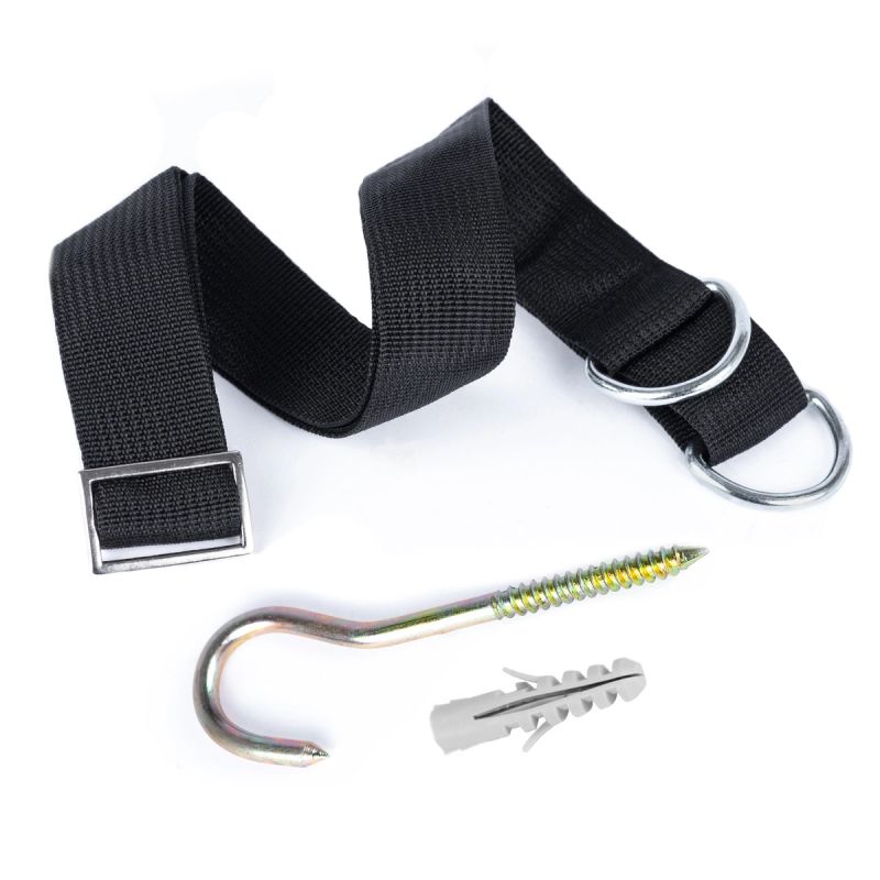 W zestawie z workiem bokserskim znajduje się taśma z klamrą. Umożliwia ona zawieszenie worka na optymalnej wysokości w stosunku do wzrostu dziecka. Prawidłowe zawieszenie worka jest istotne dla wygody, ale przede wszystkim techniki uderzeń i prewencji przed kontuzjami.